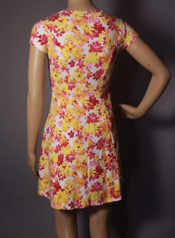 Add a burst of color to your wardrobe with these vibrant floral skater dresses. Featuring a charming A-line silhouette, round neckline, and cap sleeves, these dresses are designed for both comfort and style. The lively floral patterns, in hues of yellow, orange, and red, exude a fresh and cheerful vibe, making them ideal for sunny days. Made from soft, breathable fabric, these dresses ensure you stay comfortable all day long while looking effortlessly chic.