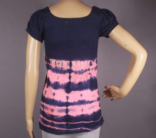 This vibrant navy blue and pink tie-dye top offers a splash of bohemian charm, crafted from soft fabric that ensures comfort and style. Featuring a square neckline and subtle pleating near the chest, this top creates a flattering silhouette for casual outings.